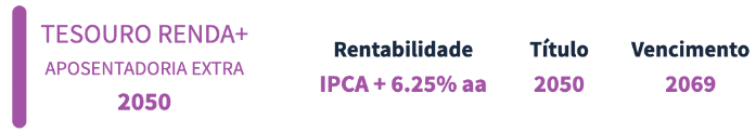 É o título mais novo do Tesouro Nacional, pensado especialmente para aqueles que almejam investir para complementar a renda na aposentadoria. Parte do seu rendimento é atrelado à inflação e parte a uma taxa de juros fixa, assim como o do Tesouro IPCA+. Isso singnifca, que o seu investimento será corrigido pela inflação mais uma taxa de juros real.
